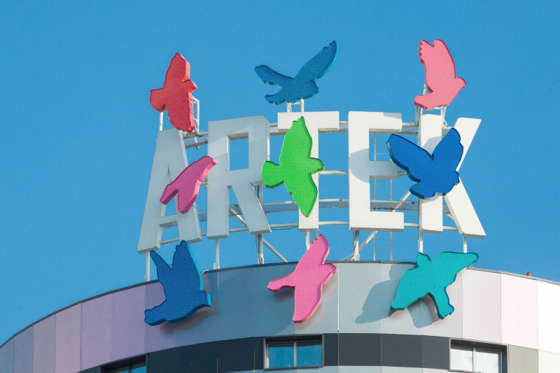 РПК Ником Реклама был реализован проект по изготовлению и монтажу крышной установки для комплекса жилых апартаментов «Артек». Буквы выполнены из металлокаркаса, лицевая поверхность из транслюцентного баннера, а внутренняя засветка светодиодными модулями повышенной яркости. В высоту они достигают 3,3 м, в длину - 9,3м. Для клиента была разработана уникальная несущая конструкция, которая имеет двухуровневую радиусную форму. Особенность данной формы позволяет опускать элементы вывески на крышу для того, чтобы самостоятельно производить техническое обслуживание. Это было основной задачей, поставленной Заказчиком, так как высота здания достигает более 60 метров и использование специальной техники не представлялось возможным. Подъем на 60-метровую высоту элементов крышной установки пришлось осуществлять при помощи строительных люлек и грузовых лифтов. Окончательная сборка производилась непосредственно на крыше здания, а монтажные работы выполнялись исключительно с применением альпинистского снаряжения.