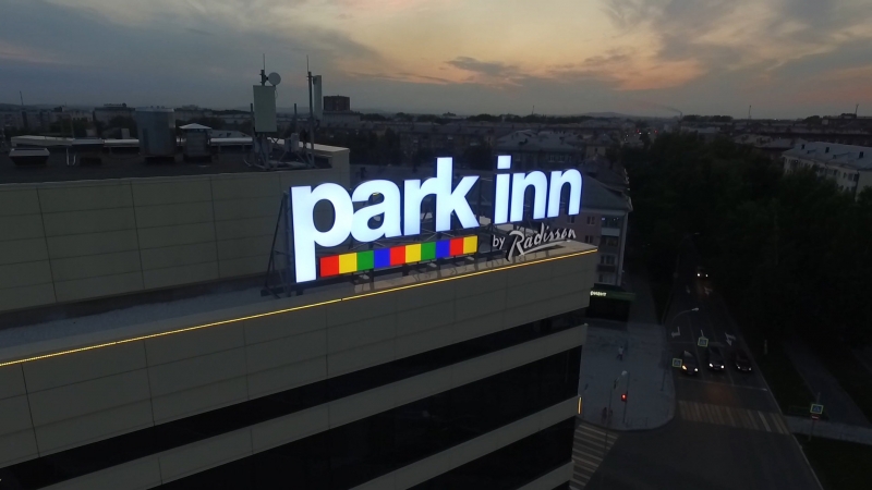Четыре крышные установки мы изготовили по технологии объемных клееных букв, размер которых достигает 10000*3363 мм. В основе каждой буквы мы использовали алюминий 2 мм, на который крепятся светодиоды, торцы зашили пластиком ПВХ 5 мм. Лицевая поверхность акриловое стекло Blue'n'White. Днем буквы синего цвета. а при засветке светодиодами - белые. Благодаря данной технологии мы добились яркого свечения всех вывесок и точно выполнили пожелания заказчика.