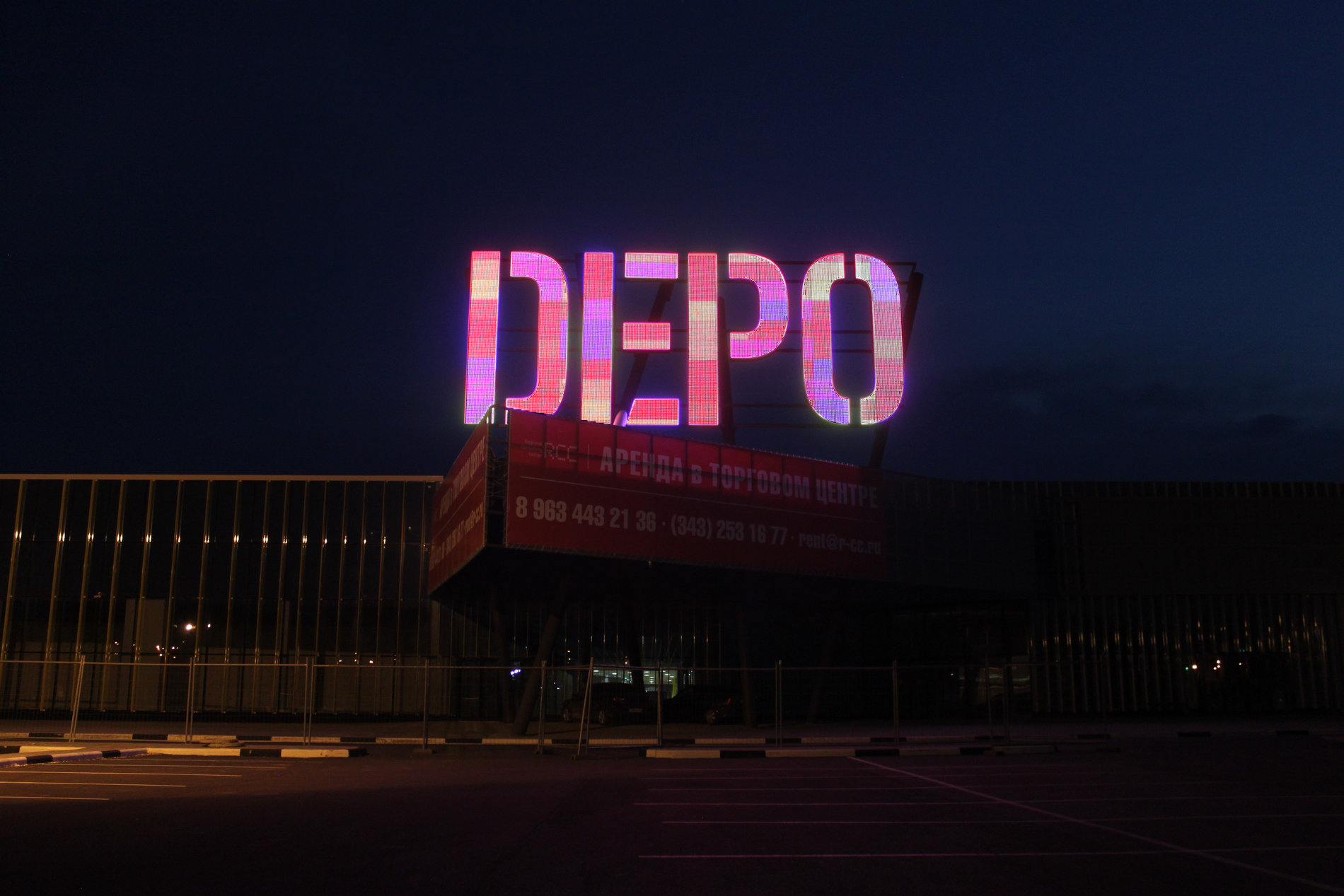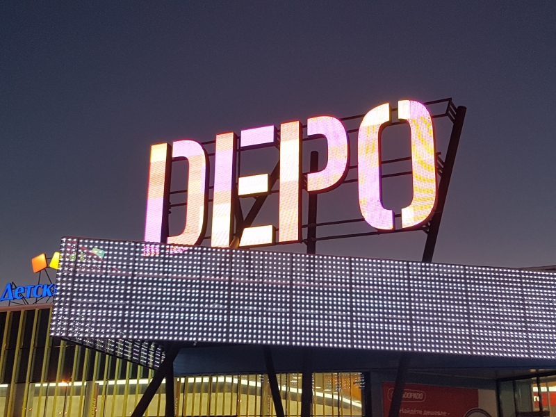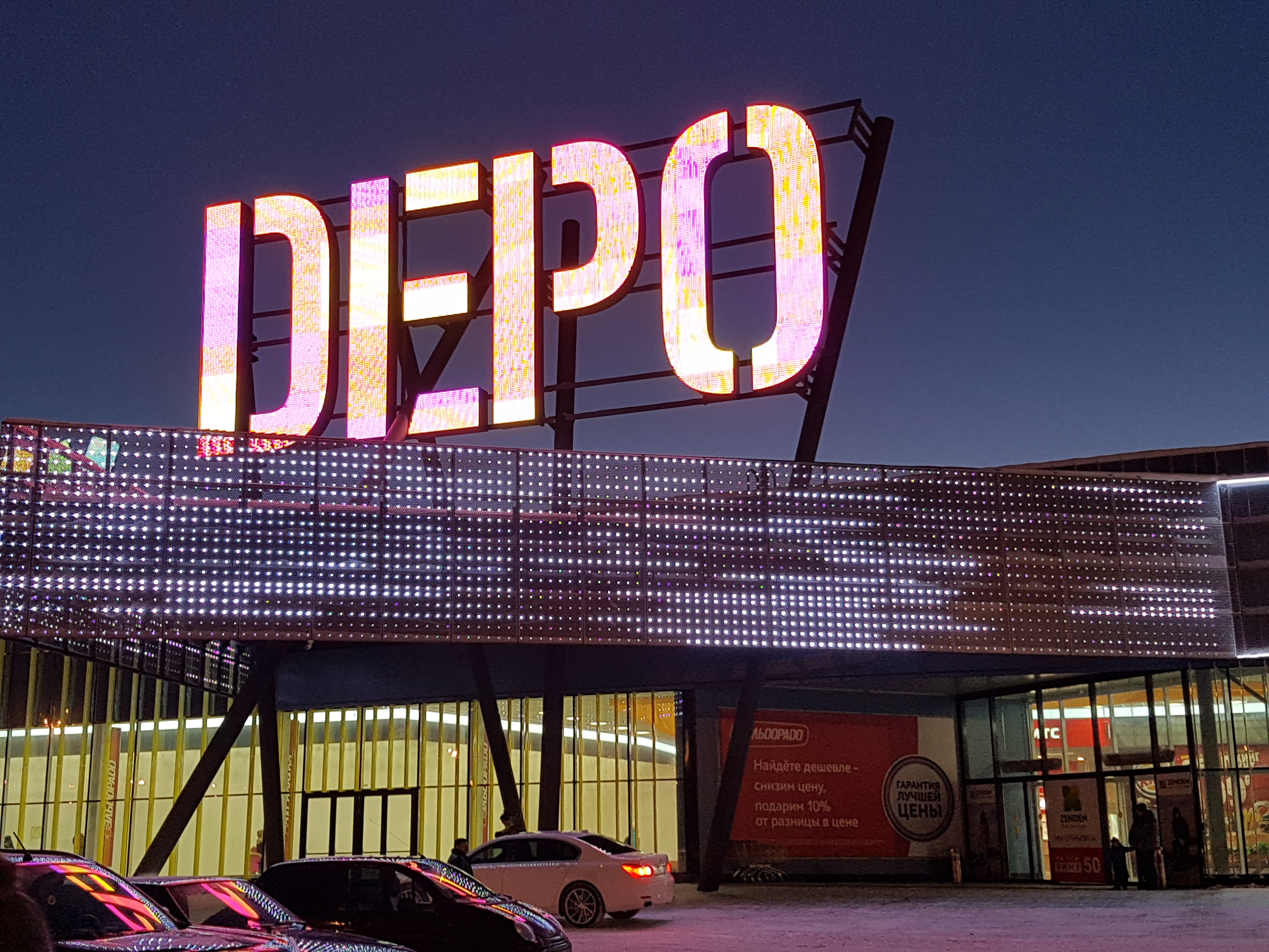 РПК «Ником реклама» выполнена интересная работа по изготовлению и монтажу крышной установки для ТЦ «DEPO». Уникальность проекта заключалась в том, что нашими монтажными бригадами была произведена достаточно сложная работа. Специально для этого была разработана проектная документация, так как от Заказчика стояла задача смонтировать буквы на готовую декоративную конструкцию из стальных труб высотой около 10 метров, находящихся в разных плоскостях и направлениях.