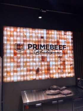 Стена из Соляных блоков, буквы из мебельного акрила. светодиодная подсветка