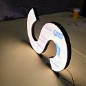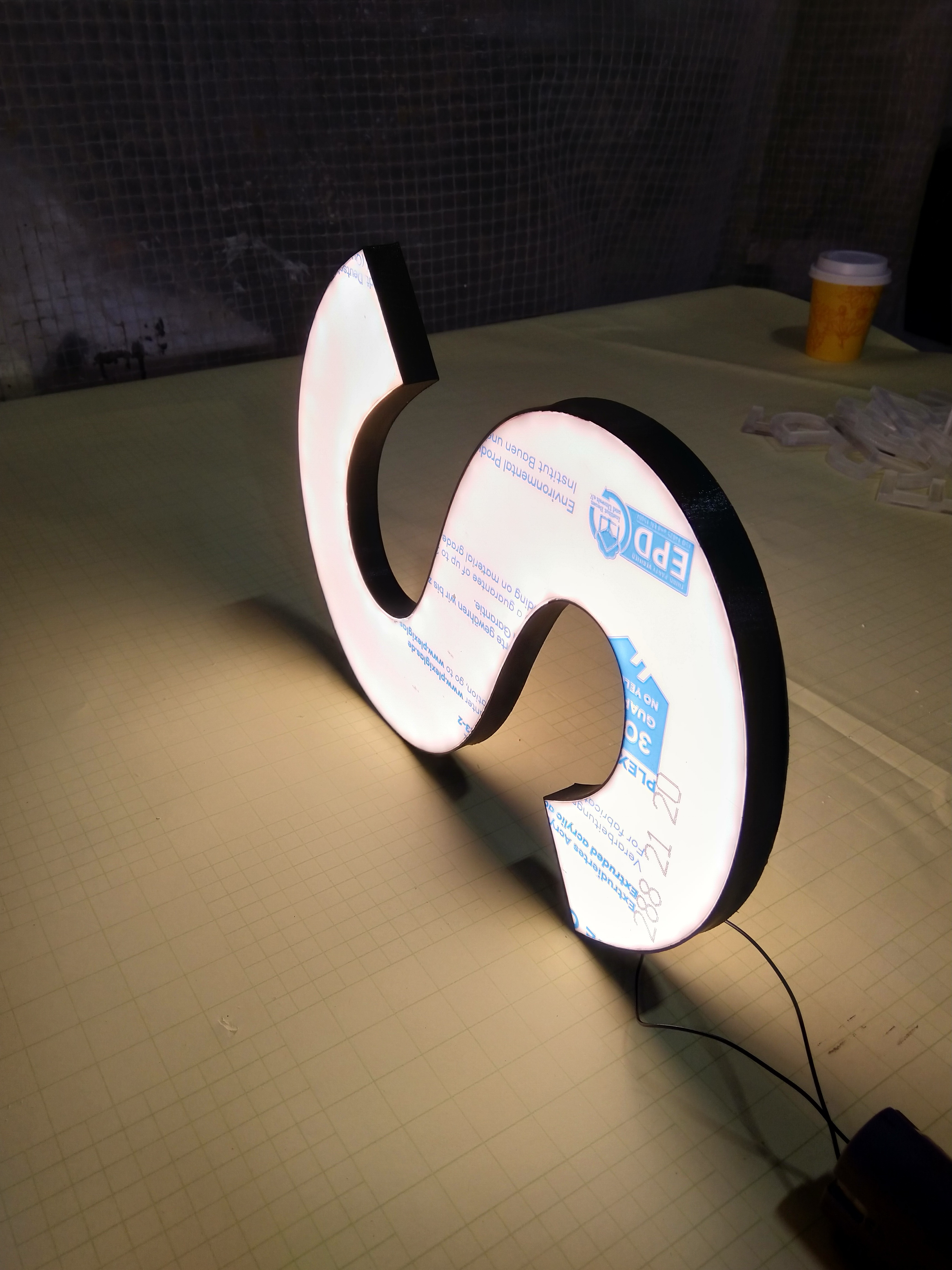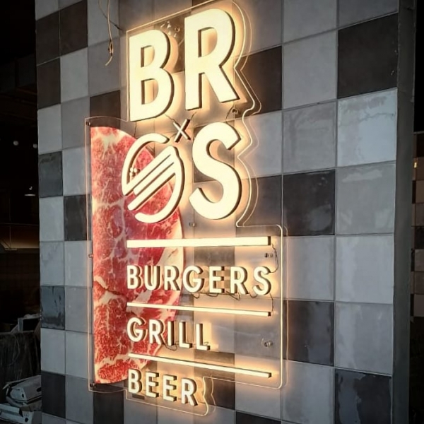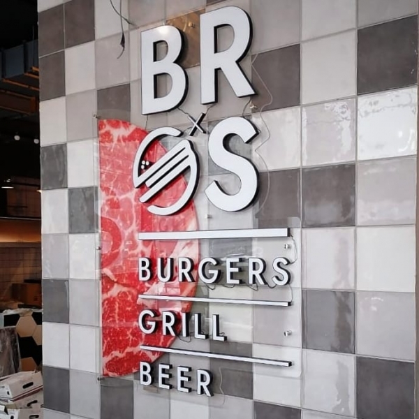 Вывеска с тонкими световыми буква при входе в ресторан