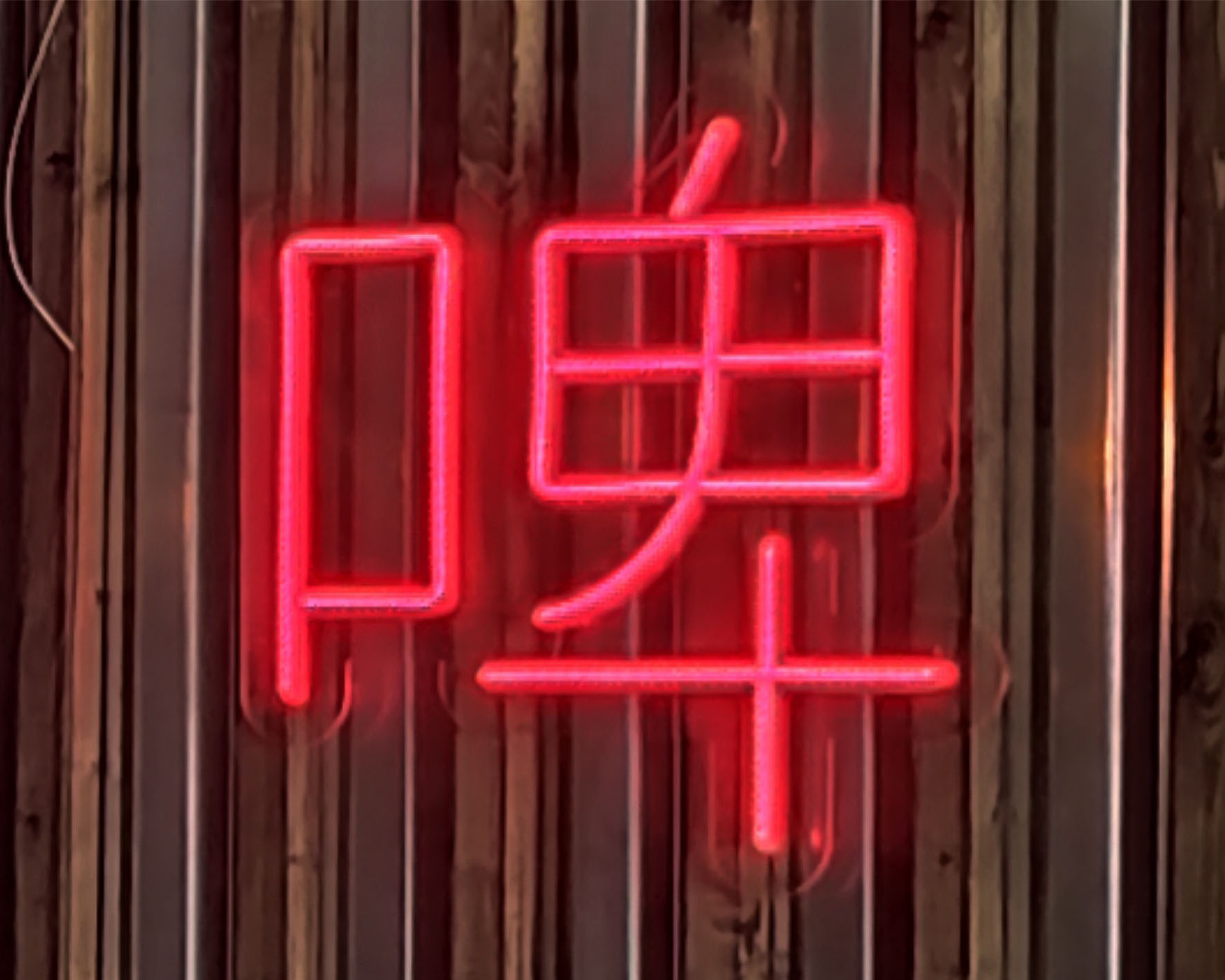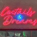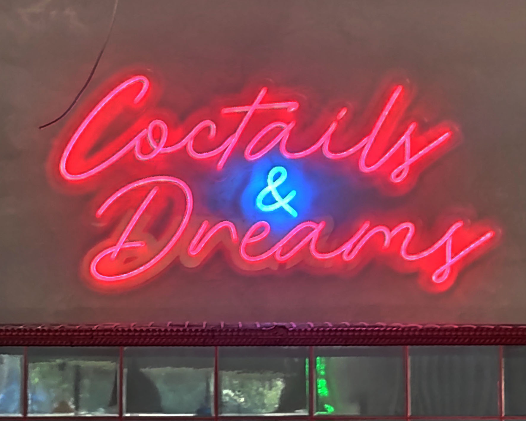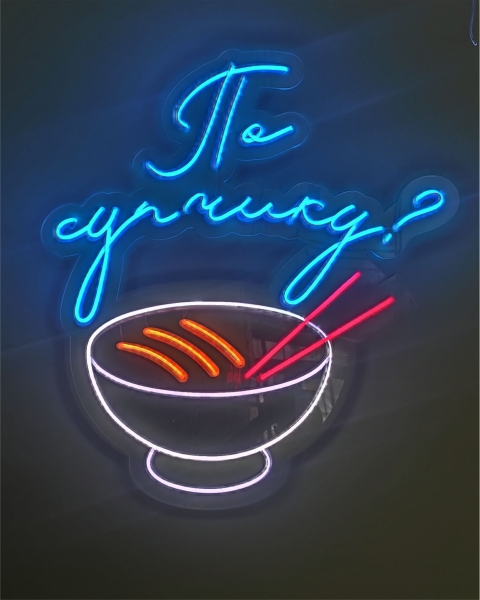 Изготовление и монтаж настенных вывесок и панель-кронштейна из гибкого неона разного цвета. Использовался неон толщиной 6мм с кратностью реза 10мм