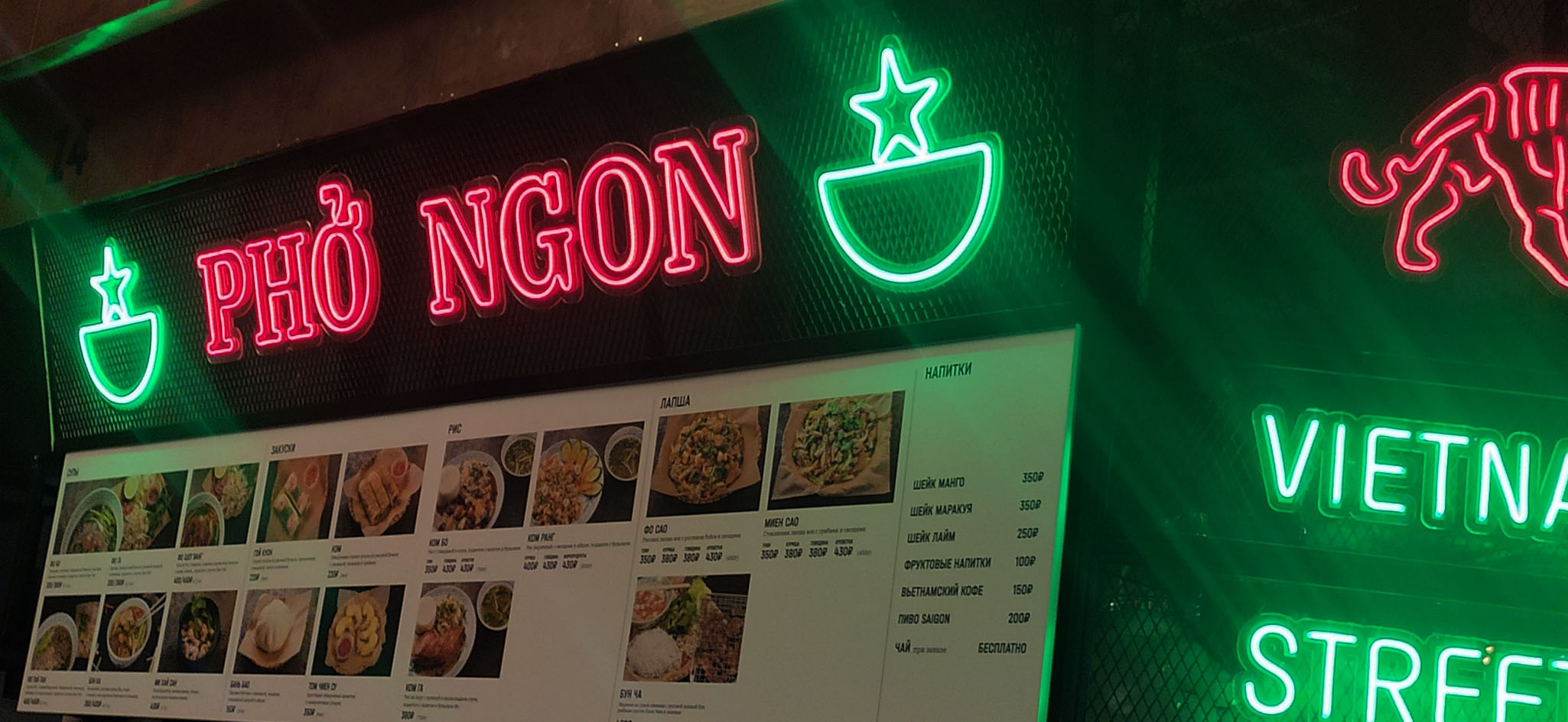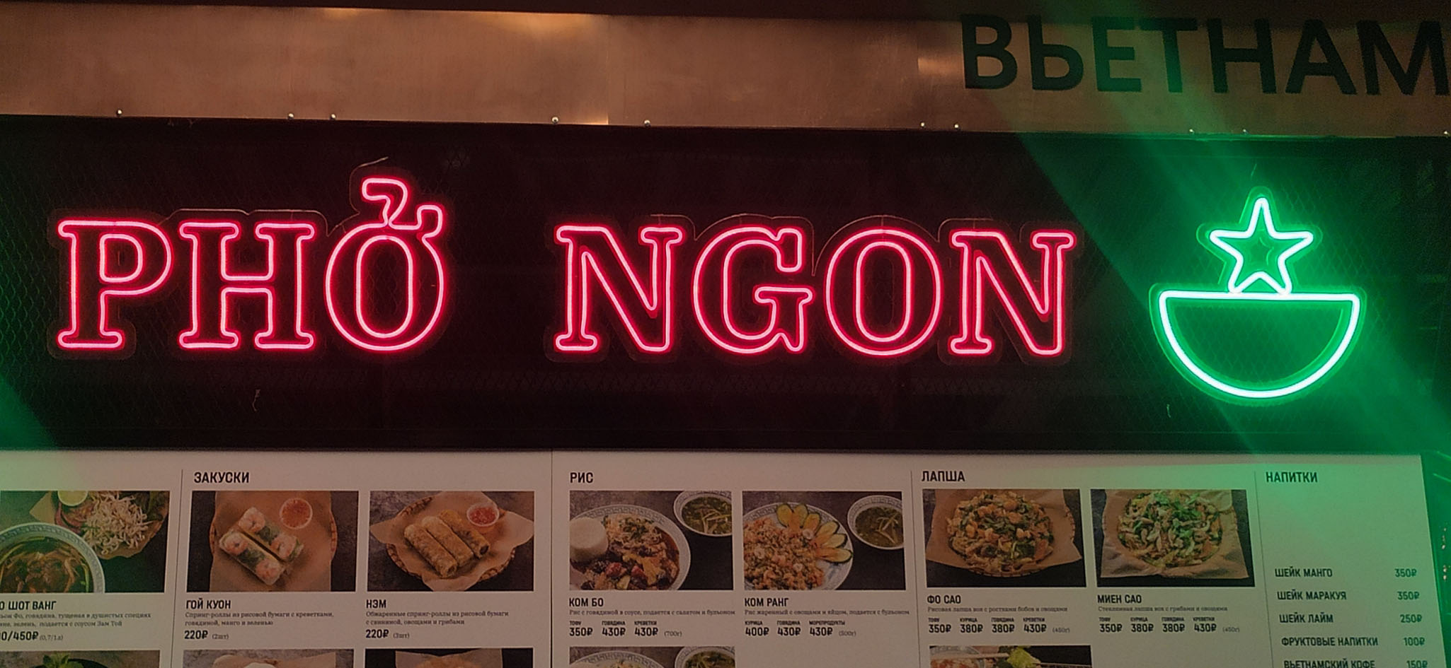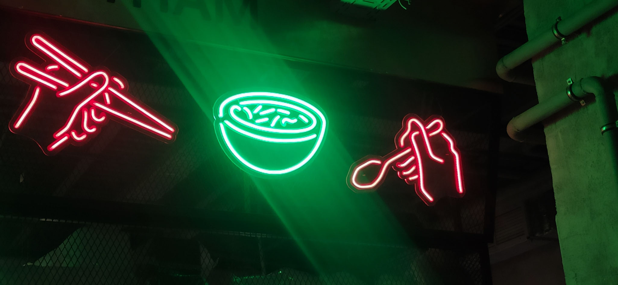 Для изготовления вывесок использовали гибкий неон 6мм и прозрачное акриловое стекло 5мм (для фигурных подложек)