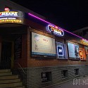 Многоуровневая основная вывеска над входом выполнена с помощью комбинации техник. Здесь и объемные буквы, и световой короб, и бескорпусные основания, которые как будто парят над поверхностью.