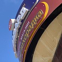 Боковой фриз: основа- композитная панель с нанесением изображения и неоновой контурной подсветкой. На панели световые короба из ПВХ с инкрустацией и акцентом на логотипы магазинов.