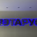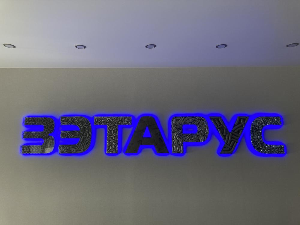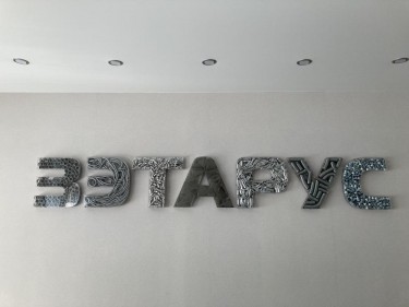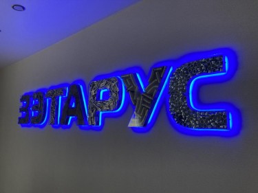 Объемные буквы из стекла с наполнением материала клиента.