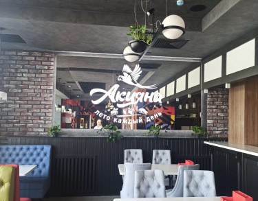 Главной изюминкой ресторана "АКИЯНА" является зеркало с пескоструйной обработкой, с внутренней и контражурной подсветкой.