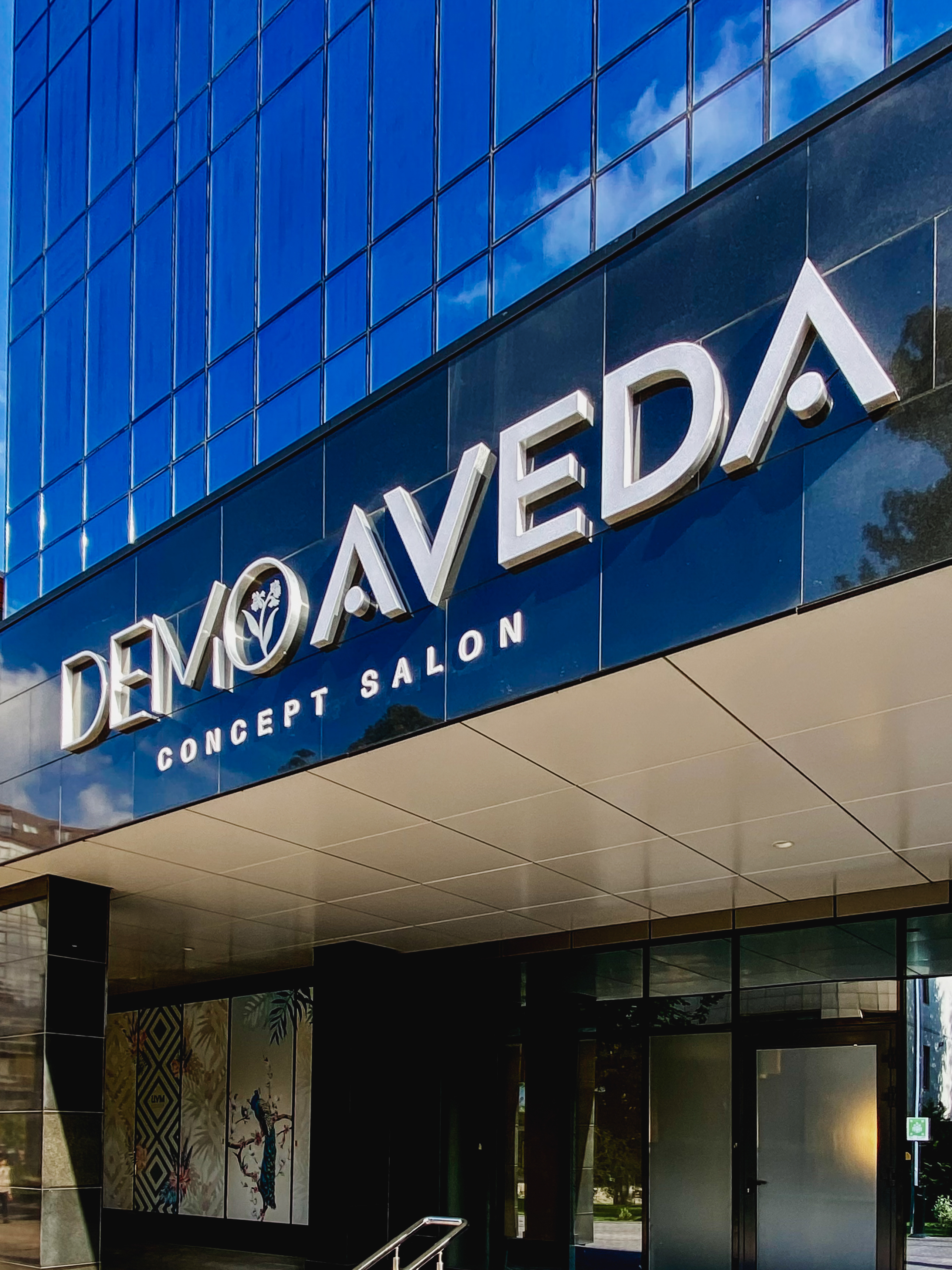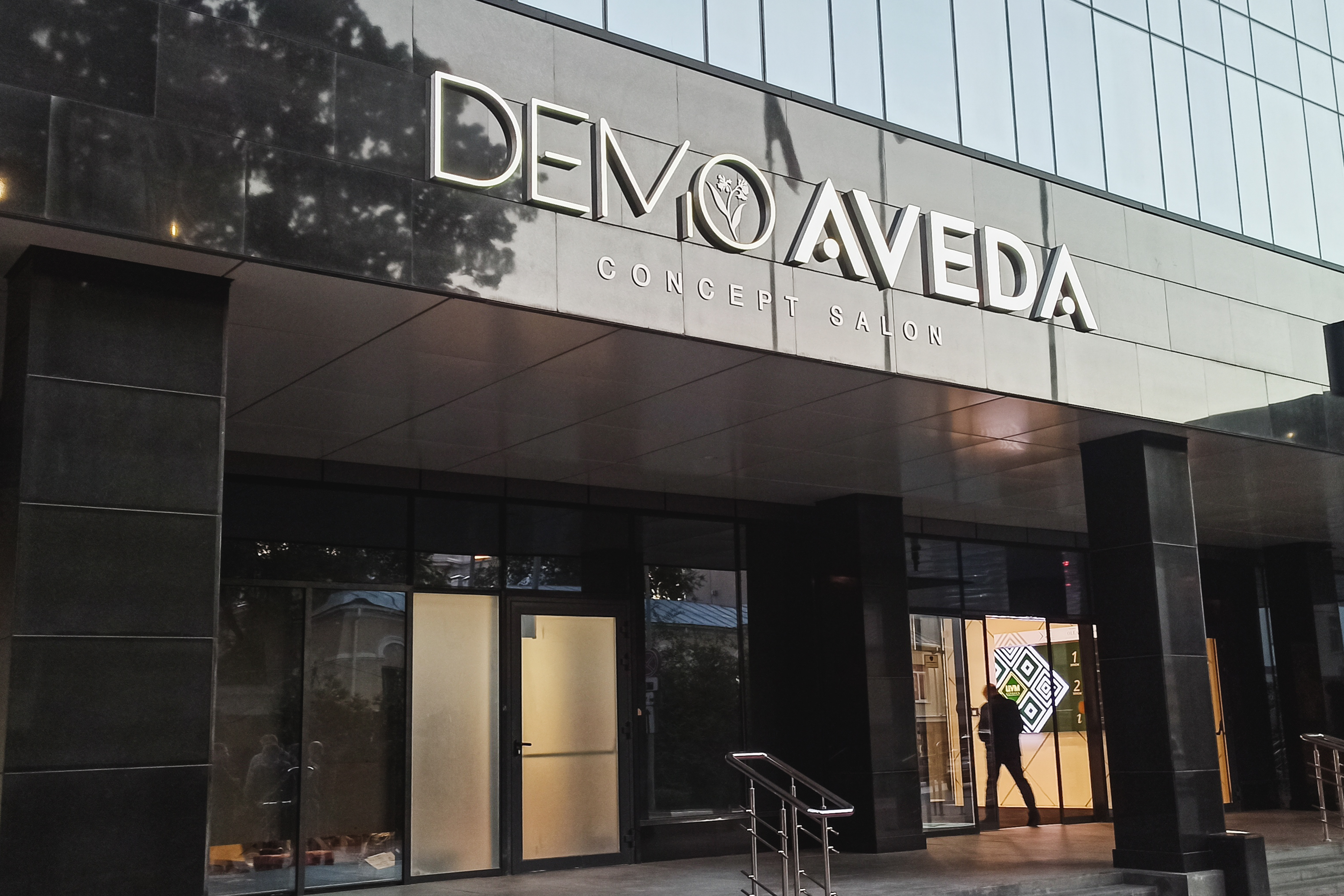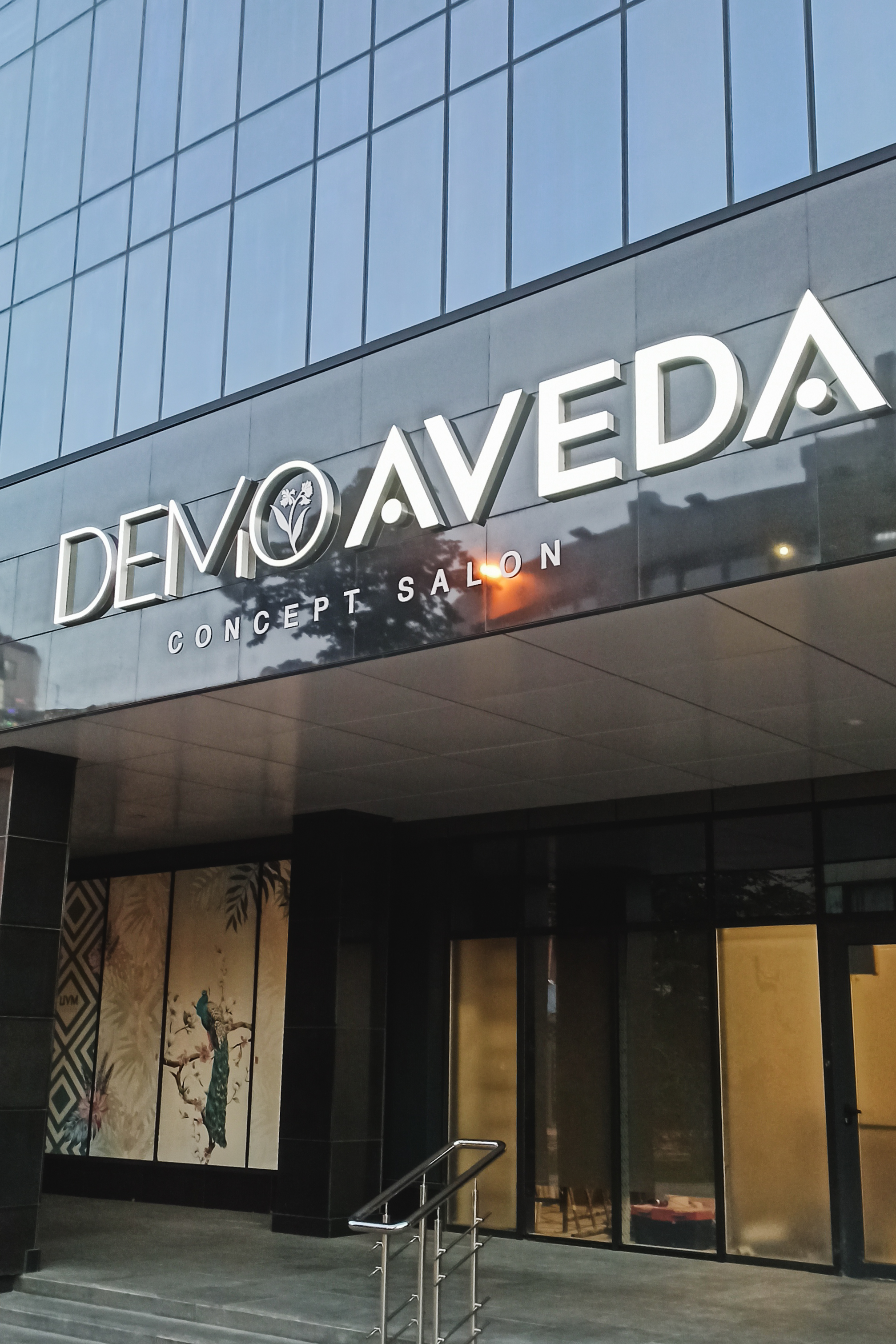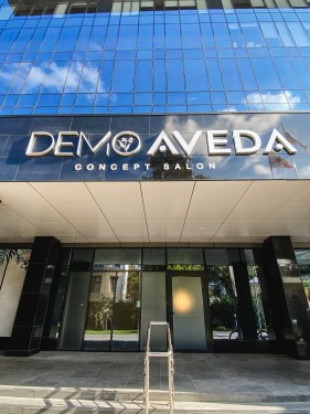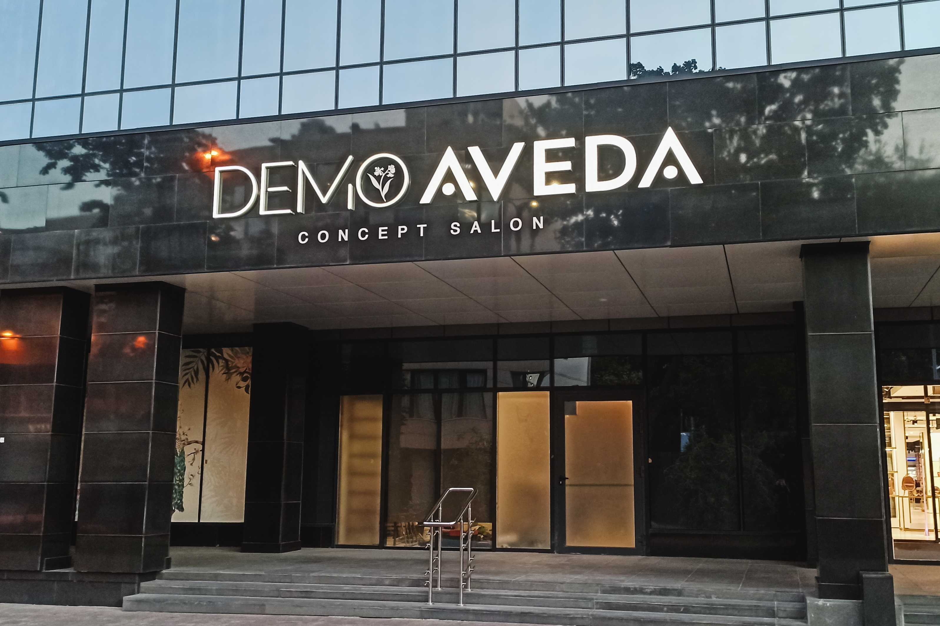 Тонкие световые буквы для салона DEMOAVEDA. Борт – алюминий под шлифованную нержавейку. Внутренняя подсветка – ELF DOT. Необычный монтаж без каркаса на мрамор, скрытая проводка. Простая и красивая вывеска.