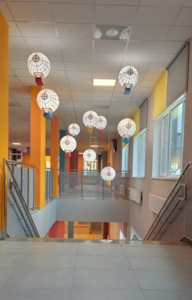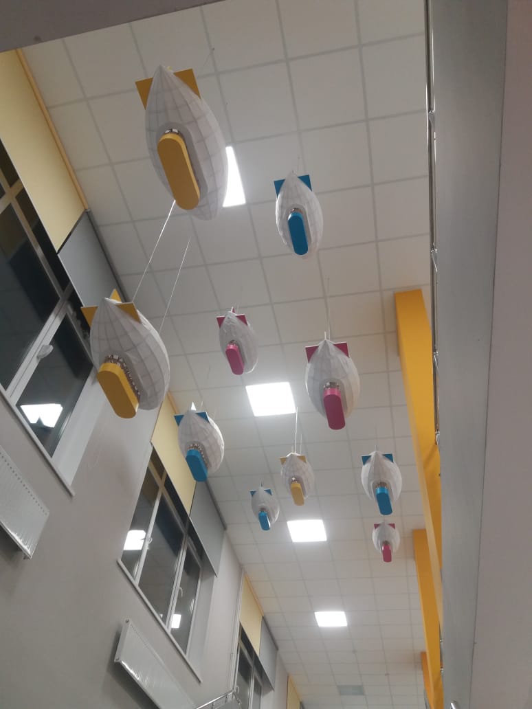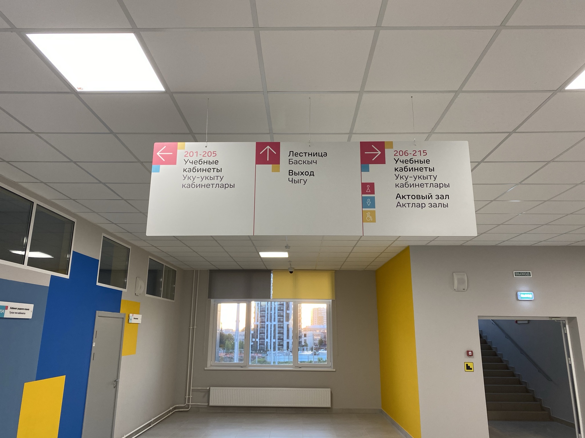 Дверные, поэтажные, подвесные таблички. Светильники "Дирижабли" над лестницей.