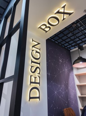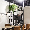 Больше всего нравится самим – логотипы в зоне рабочих мест с элементами из латуни 2 мм. Интерактивные стойки и боксы для зарядных устройств – металл 3-4 мм с порошковой покраской и логотипами из латуни. И в каждый интерьер дизайнеры добавляют много постеров, которые мы печатаем на разных материалах –от ПВХ и полистирола до фанеры и дерева.