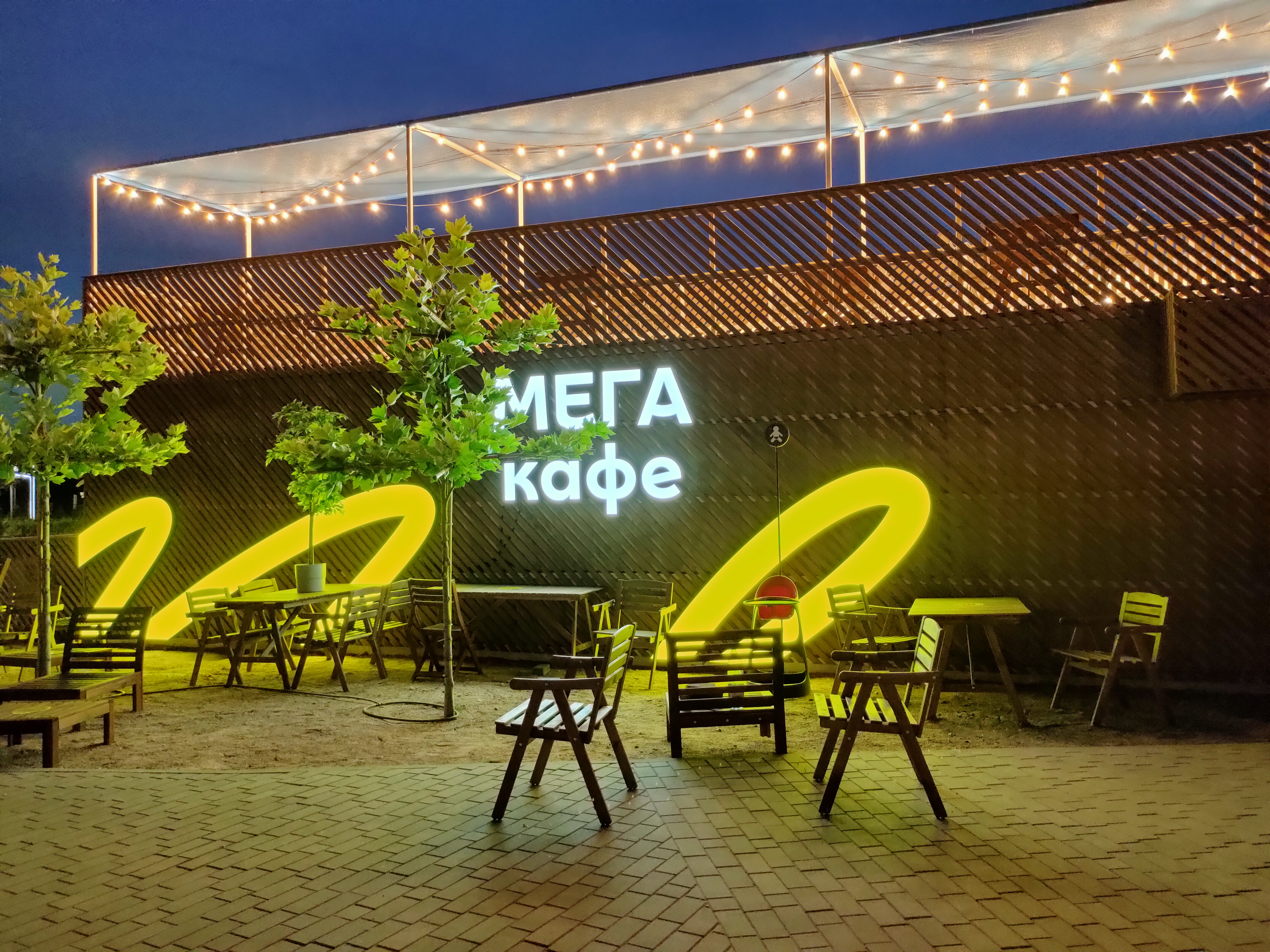 Кроме основных навигационных вывески на въезде/выезде из МЕГАпарка, наша компания изготовила светодинамическую вывеску около фонтана. А так же множество средств коммуникации: правила аттракционов, указатели, фотозоны и пр.