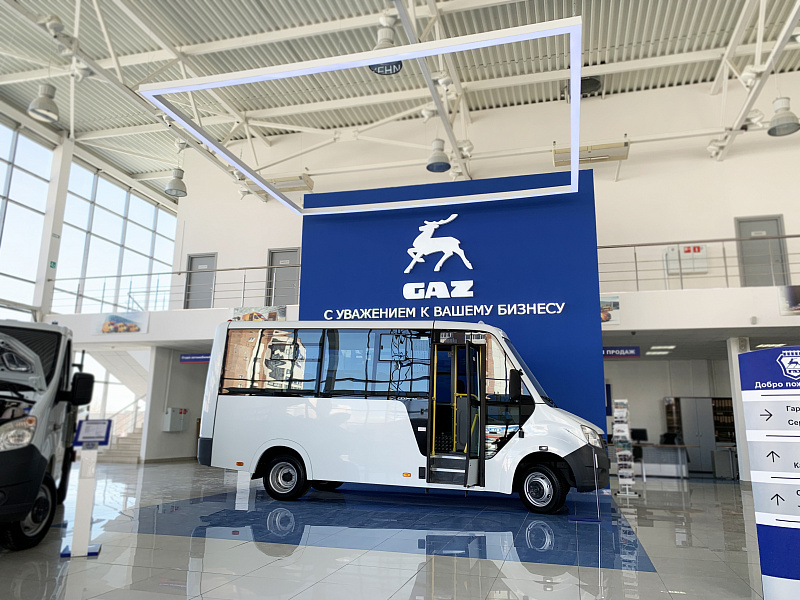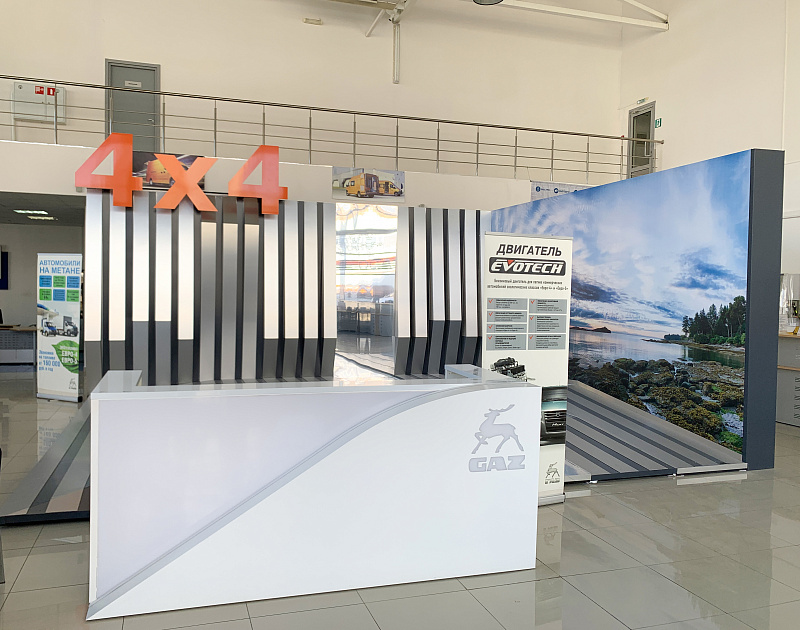 Комплексное наружное и внутреннее оформление автосалона ГАЗ - это огромная трудоемкая работа, которая полностью изменила внешний облик привычного автосалона.