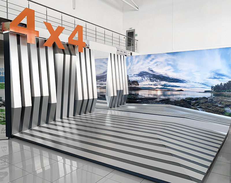 Зона "4х4" - это сложная геометрическая конструкция из металла и композитного материала, которая выдерживает вес тяжелого внедорожника.