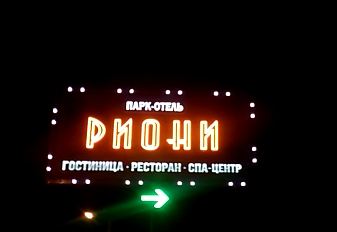 Вся вывеска с динамичной подсветкой, которую видно издалека. Общую композицию завершает световая рамка с программируемыми эффектами.