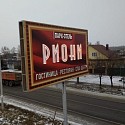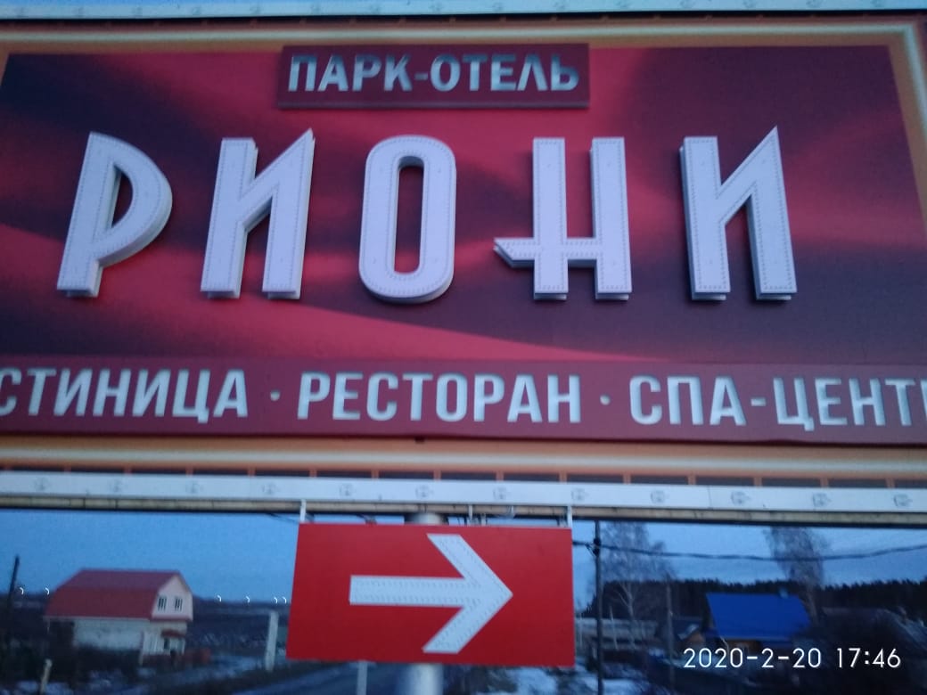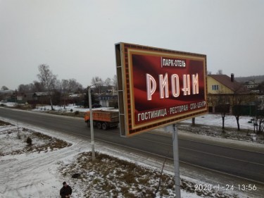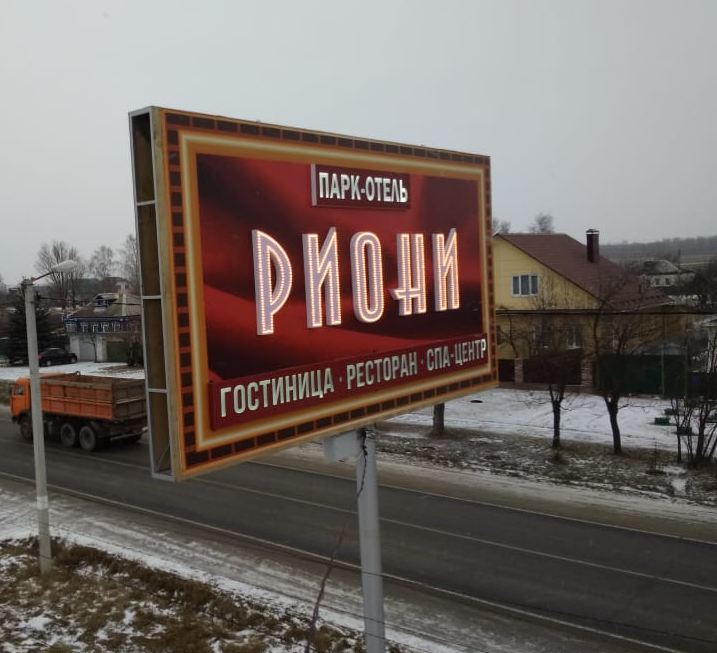 Вывеска для загородного парк-отеля на рекламном щите, который находится на оживленном шоссе. Основной задачей проекта было обозначить место нахождение комплекса отдыха за городом.