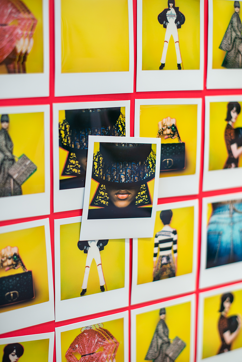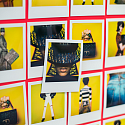 Деревянный каркас обшит композитными панелями, окрашен в ярко-розовый цвет. Самое интересное - лицевая часть оформлена снимками Polaroid, на которых напечатаны снимки рекламной кампании. Мы арендовали для печати снимков оригинальный принтер Polaroid, с оригинальными картриджами. Вручную, по одной штуке, напечатали 800 снимков.