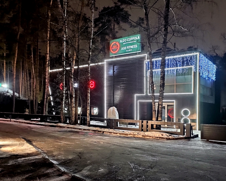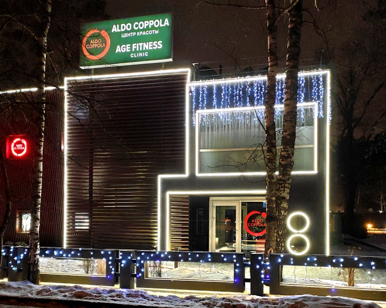 Для декоративной подсветки здания компании ALDO COPPOLA в Жуковке использовали гибкий неон