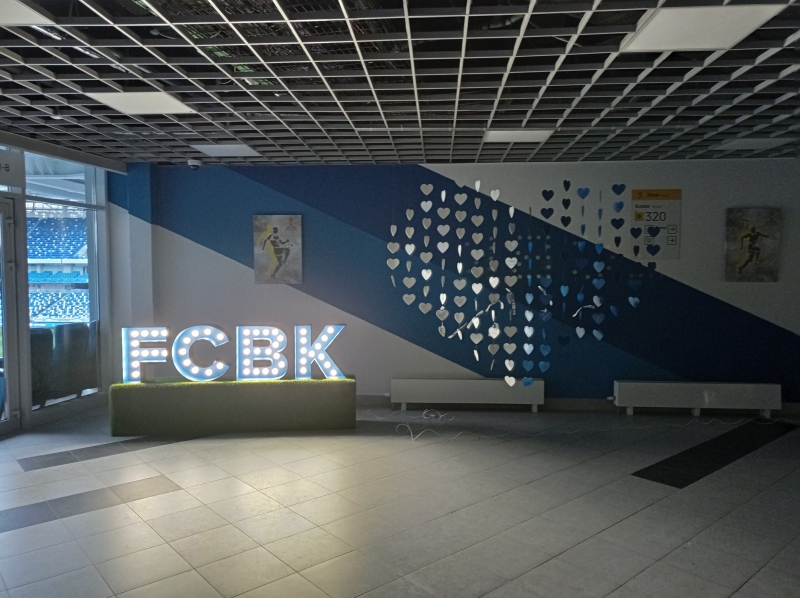 Фото зона состоит из двух элементов. Сердце из маленьких сердец ПХВ 3 мм.(белое и синее)и смонтированы в виде сердца для написания пожеланий. Буквы объемные из ПХВ 6 мм. окрашенные в синий цвет и лампы светодиодные.