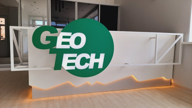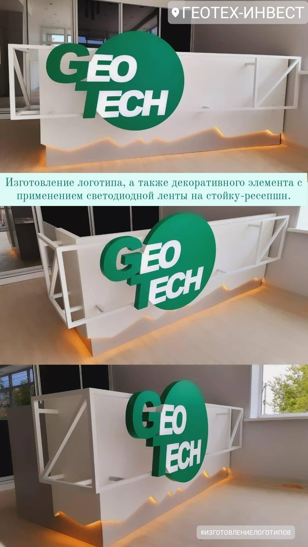 Изготовление логотипа, а также декоративного элемента с применением светодиодной ленты на стойку-ресепшн
