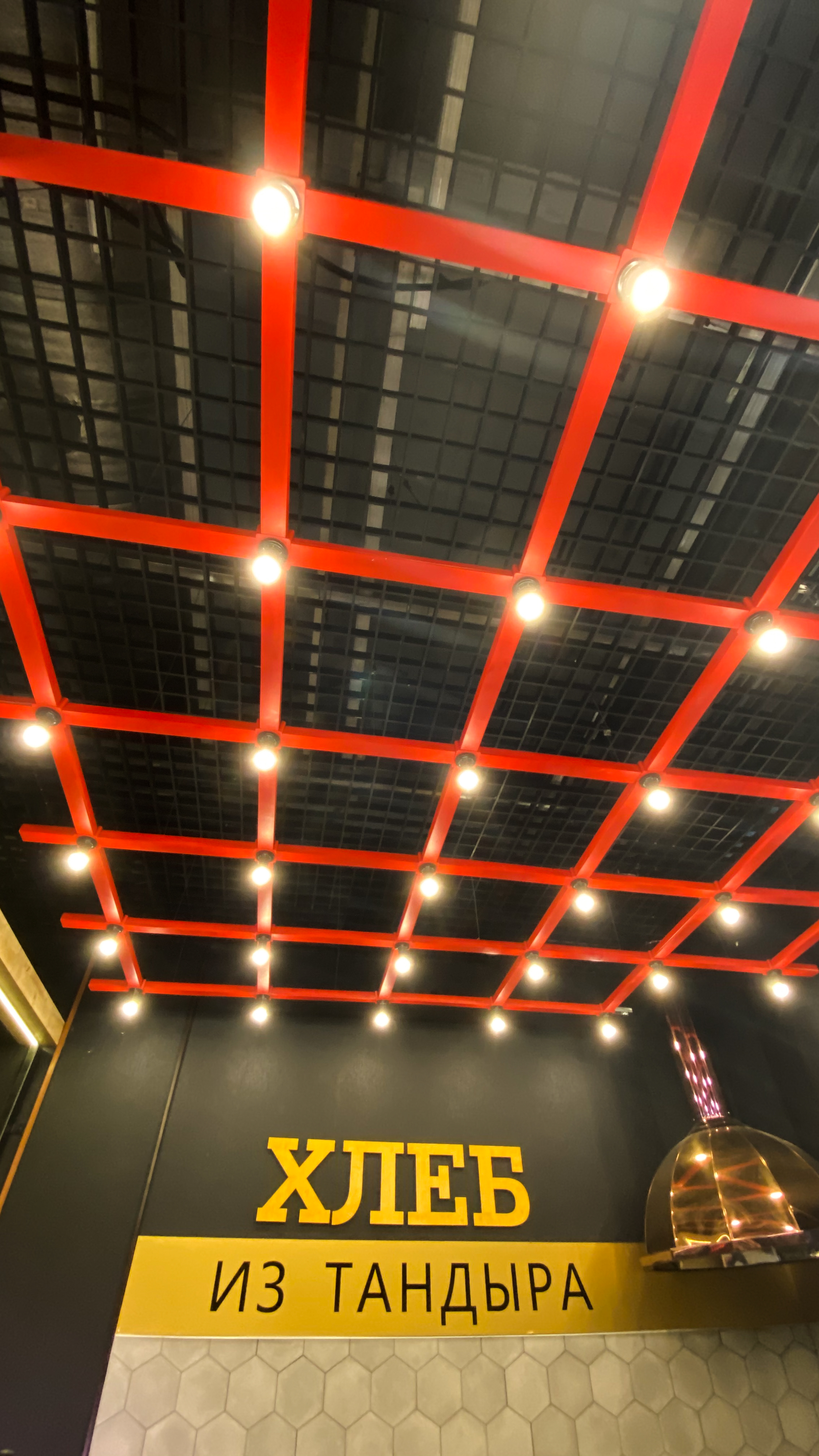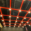 - сборка и монтаж зоны потолка в виде красной сетки с подсветкой лампами;