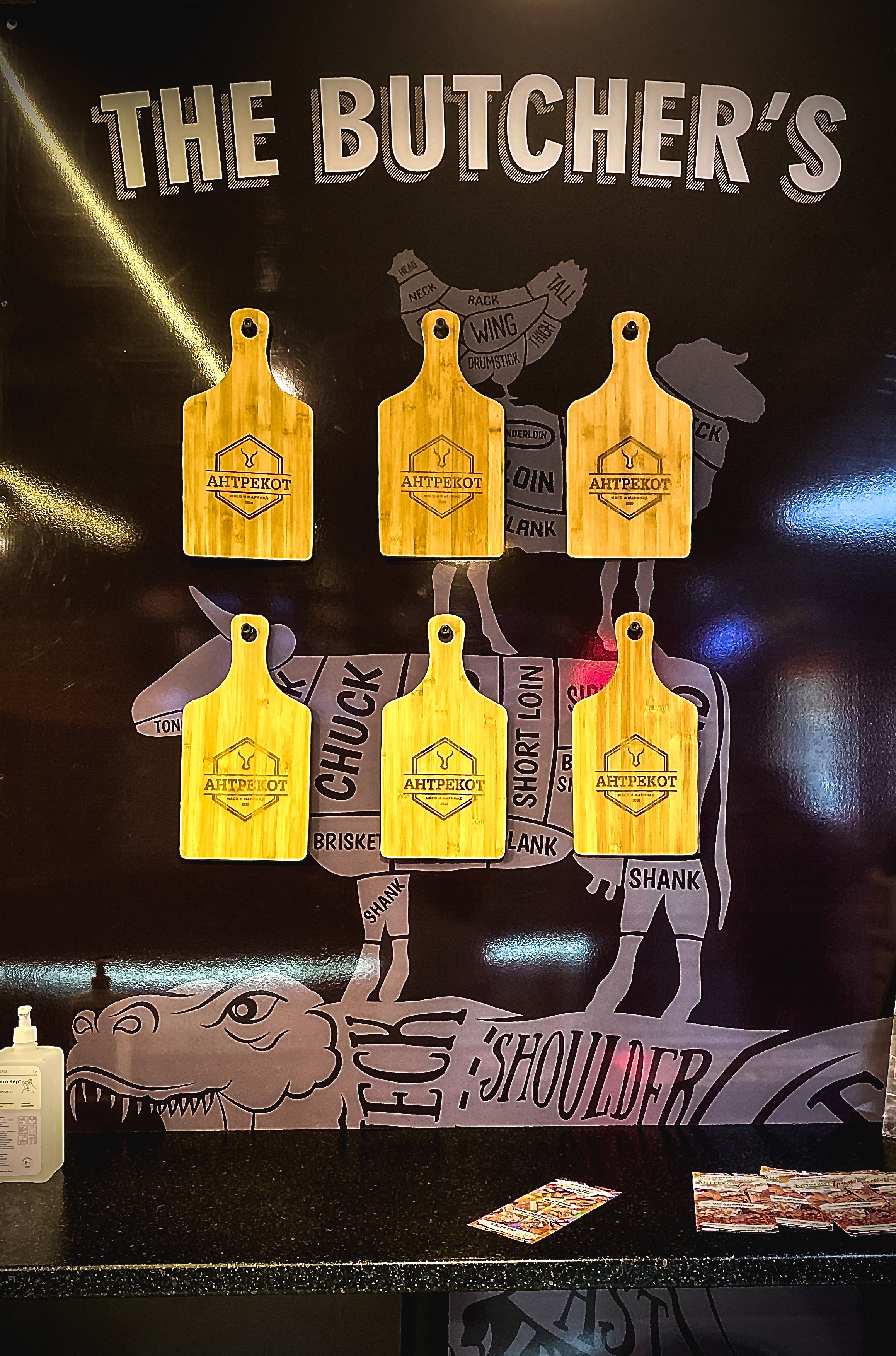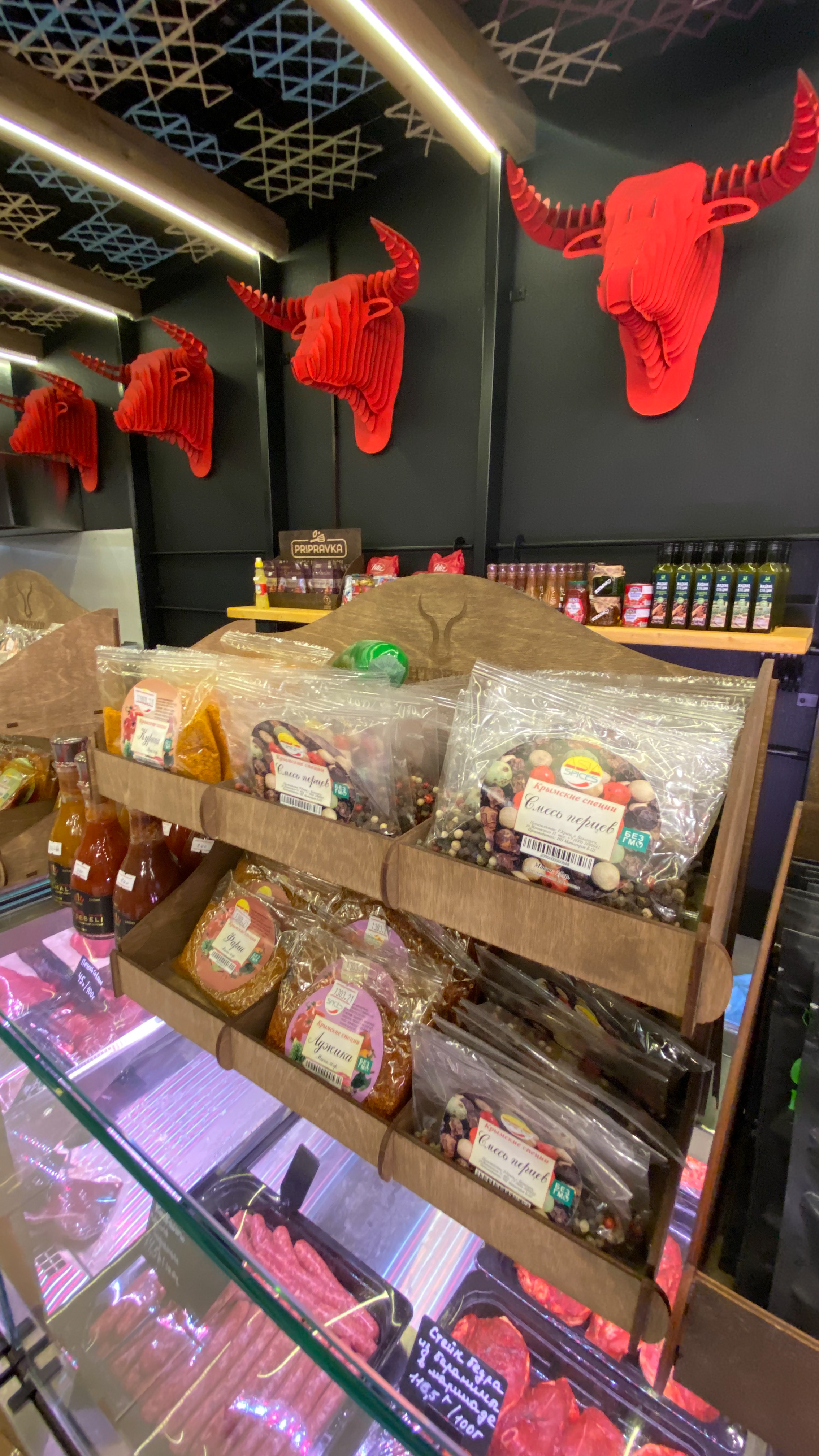 Внутреннее оформление мясного магазина «Антрекот» в Многофункциональном комплексе «Меганом» г.Симферополя.